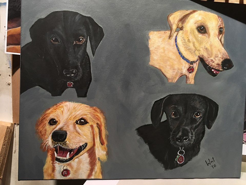 | It all started with Krista asking me to paint Cory's kids (dogs)-all 4 of them for his birthday! | |||||