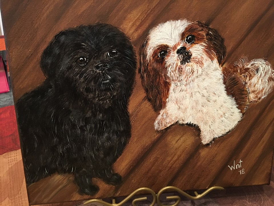 | So now, time to update Abby, our little Shih-Tzu that has been with us since January 2013- Photo on left is what I painted in 2014- to the right, I just finished. | |||||