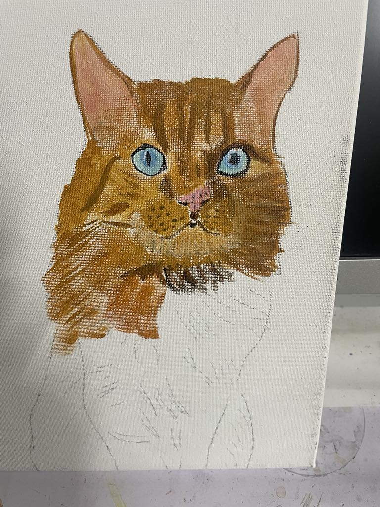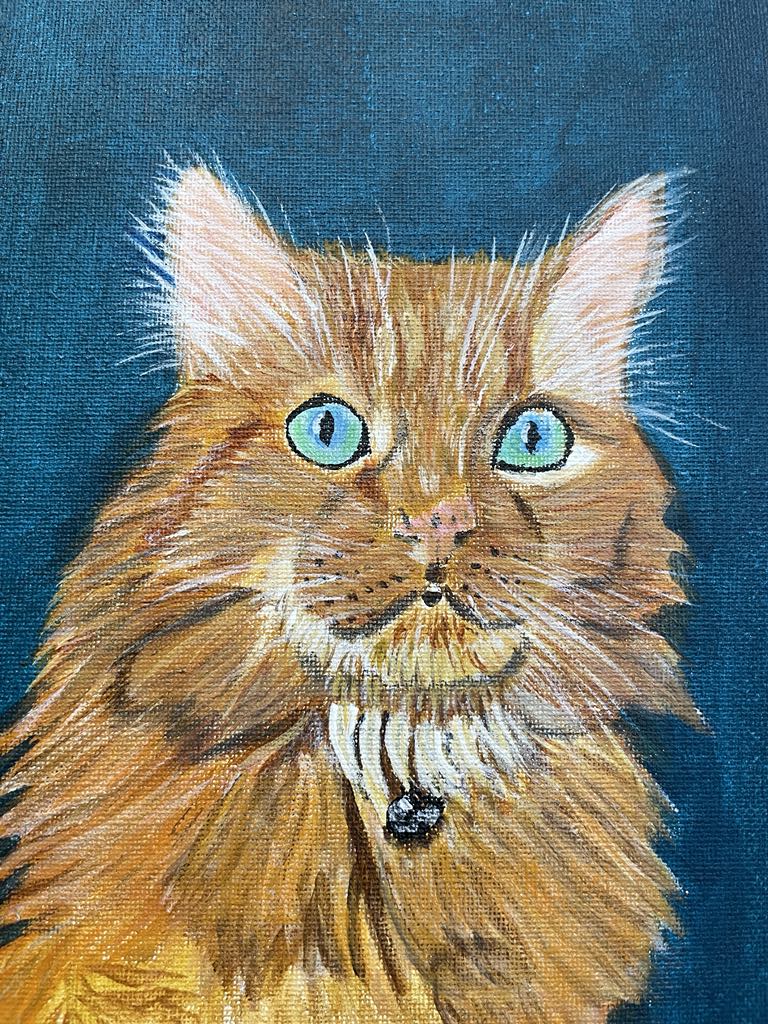 to wait at the Rainbow Bridge a couple of months ago. To say that this cat has a lot of fur, is indeed an understatement. Challenging to paint, that's for sure, and hopefully the client's Dad will love it. |